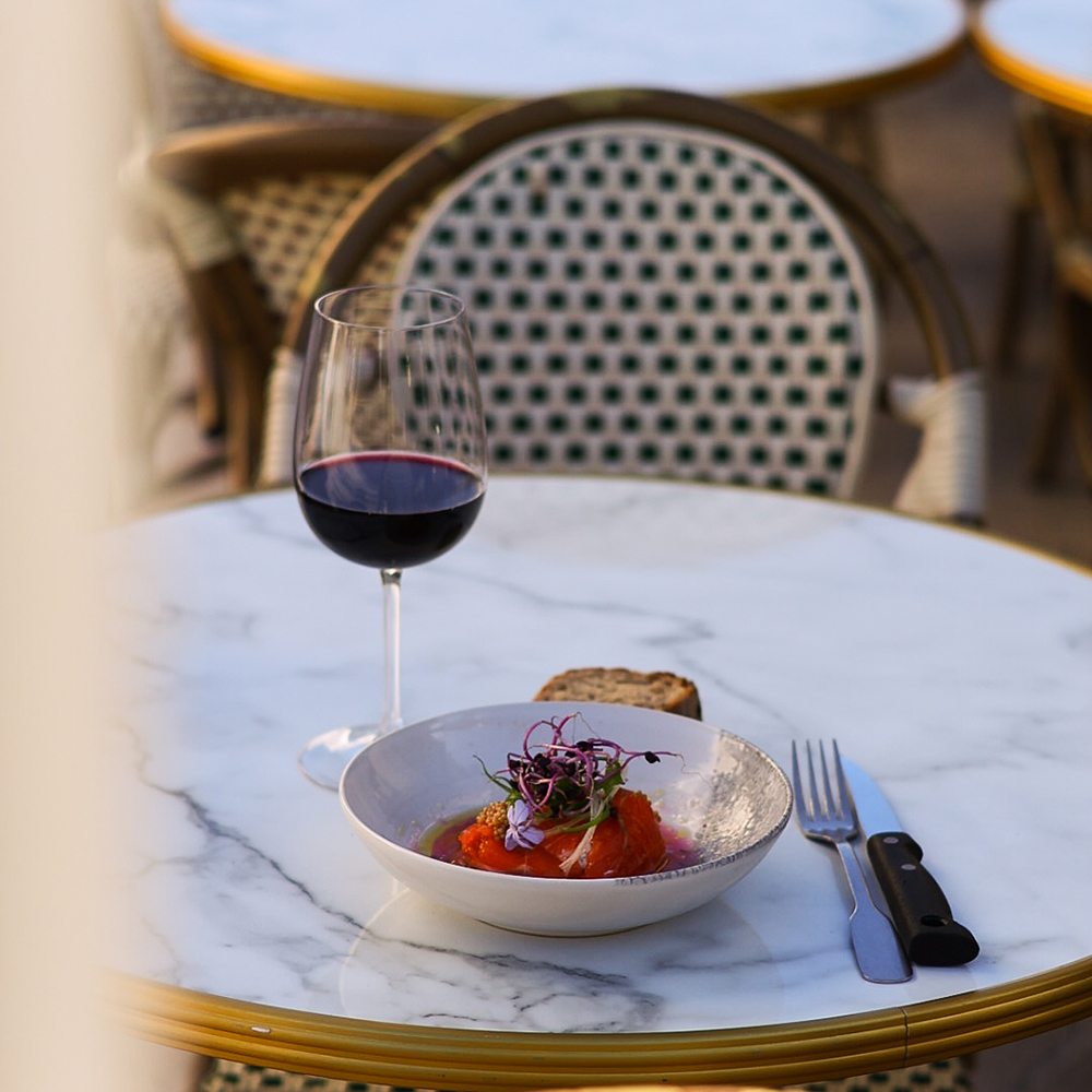 À l’intérieur, une décoration élégante, vintage et qui rend hommage aux origines de ce quartier historique. À l’extérieur, une terrasse ensoleillée et enjouée !